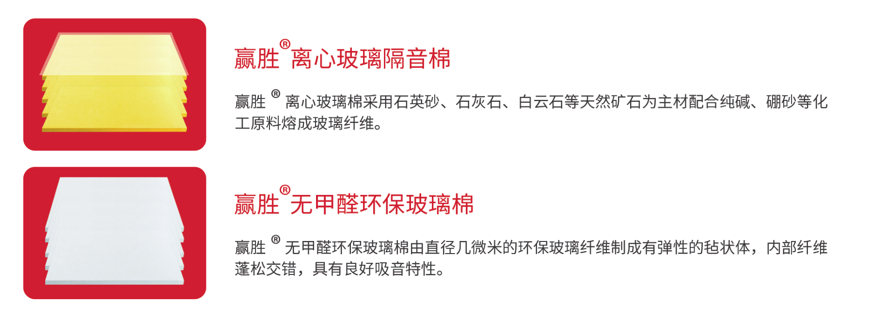 赢胜®墙体隔音隔热棉是由直径5-7μm采用离心喷吹工艺制造的玻璃纤维组成,具有较低的导热系数和较高的吸声系数,在满足保温的同时对空间内的噪声具有极强的吸收作用,每块面板外包保护膜,防止粉尘和玻璃丝飞出,更加环保安全。